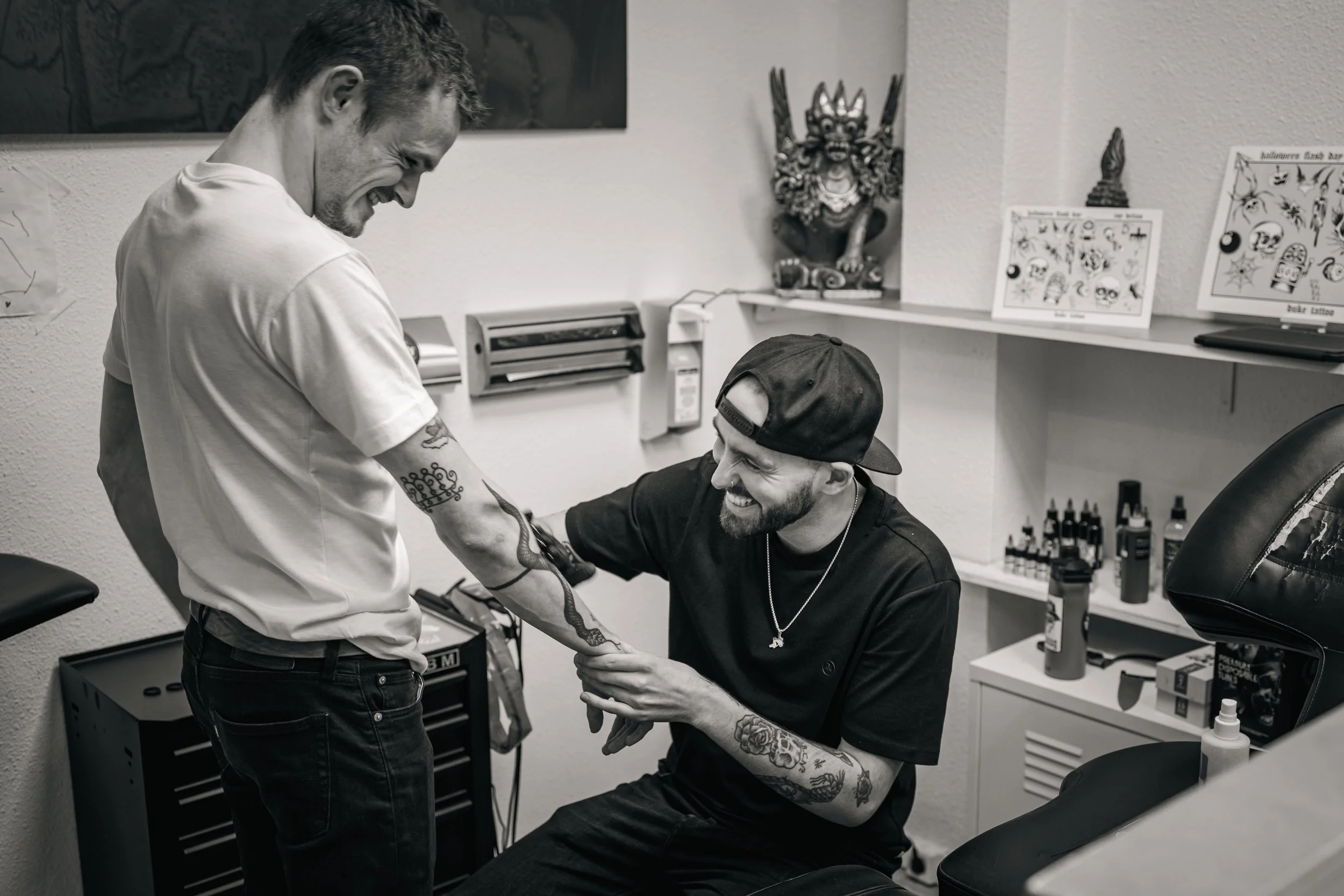 Een verse tattoo lijkt op een schaafwond, het is belangrijk deze met zorg te behandelen. Na afloop van de afspraak ontvang je uitgebreide instructies over de nazorg. Ze zijn ook te lezen via onderstaande link. Volg de instructies nauwkeurig, dan verloopt de genezing soepel. Heb je in de tussentijd nog vragen? Neem dan vooral contact op.